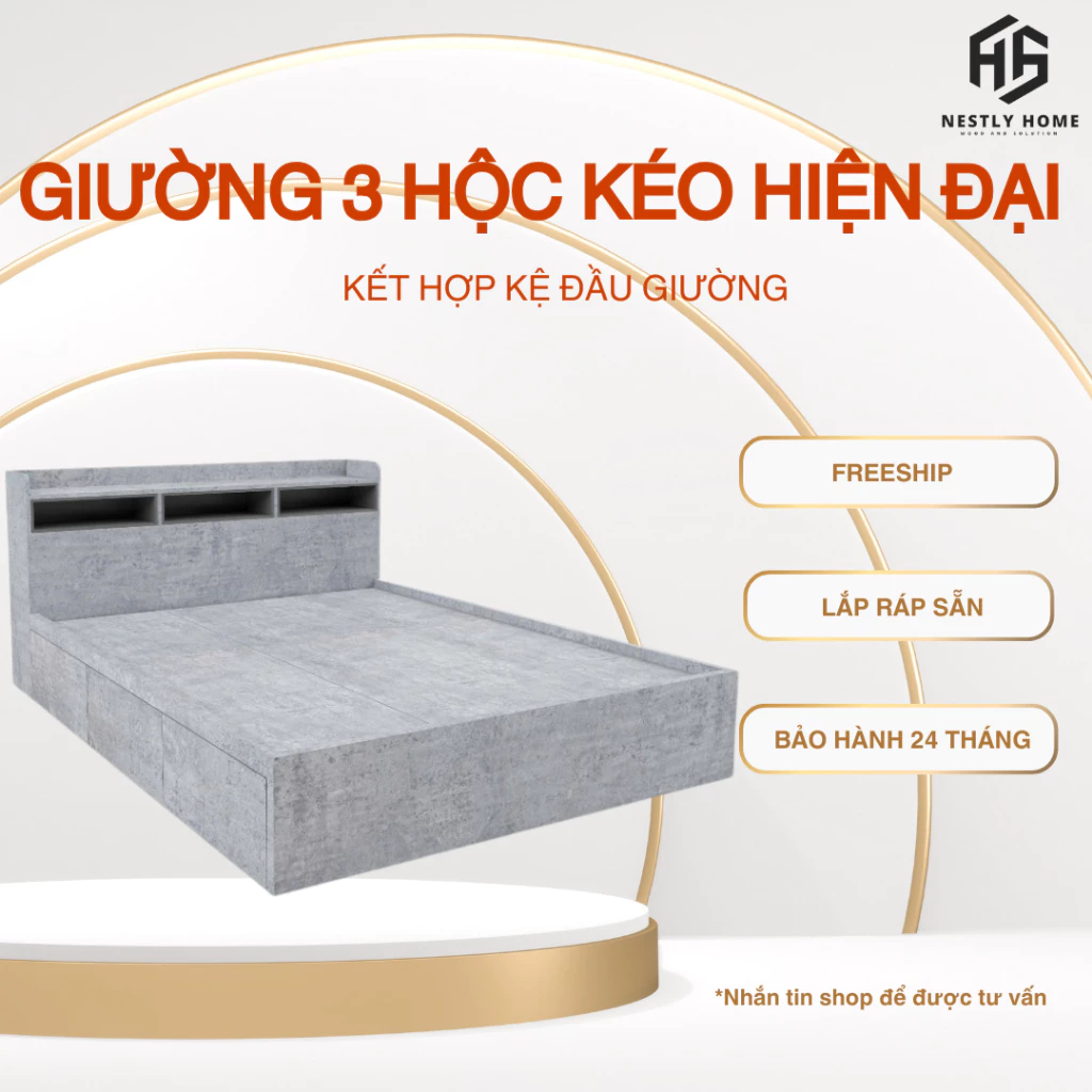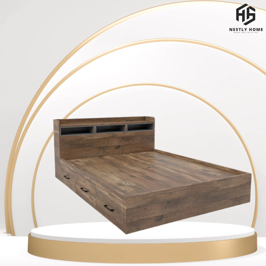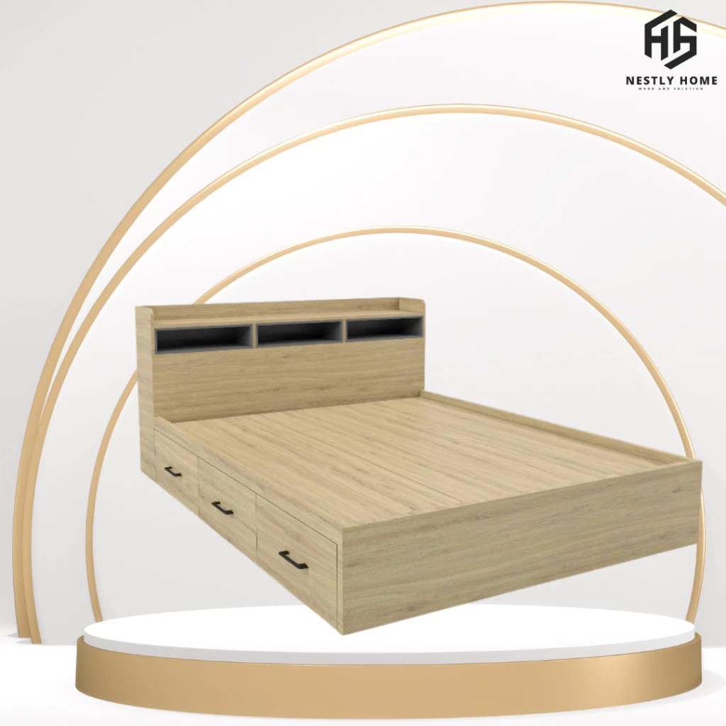 Đánh giá Giường 3 hộc kéo hiện đại kết hợp kệ đầu giường gỗ MDF cao cấp