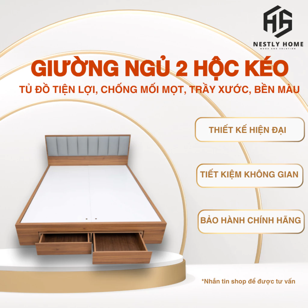 Đánh giá Giường ngủ 2 hộc kéo Nestly Home gỗ MDF tủ đồ tiện lợi, chống mối mọt, trầy xước, bền màu
