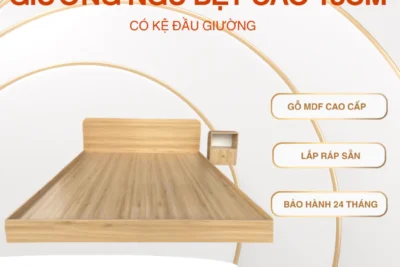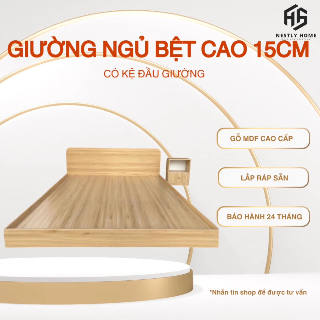 Đánh giá Giường ngủ bệt cao 15cm có đầu giường gỗ công nghiệp mdf cao cấp