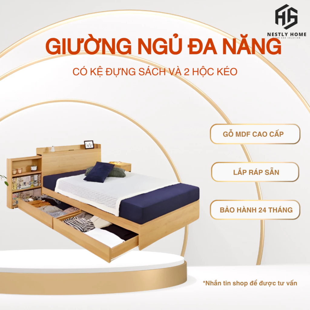 Đánh giá GIƯỜNG NGỦ ĐA NĂNG CÓ KỆ TỦ ĐỰNG SÁCH VÀ 2 HỘC KÉO GỖ MDF CAO CẤP