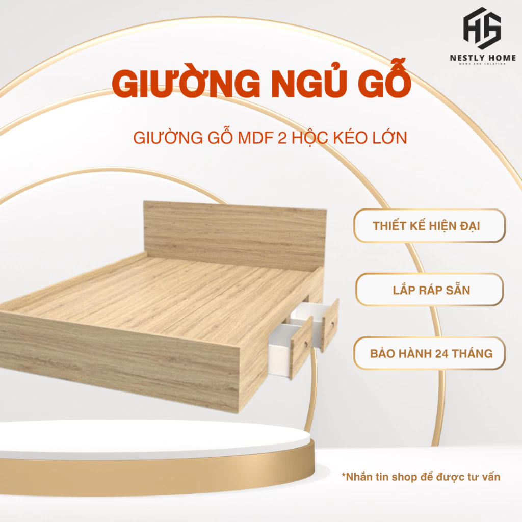 Đánh giá Giường ngủ gỗ, giường gỗ MDF có 2 hộc kéo lớn
