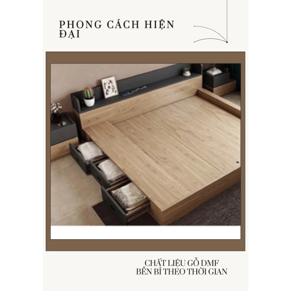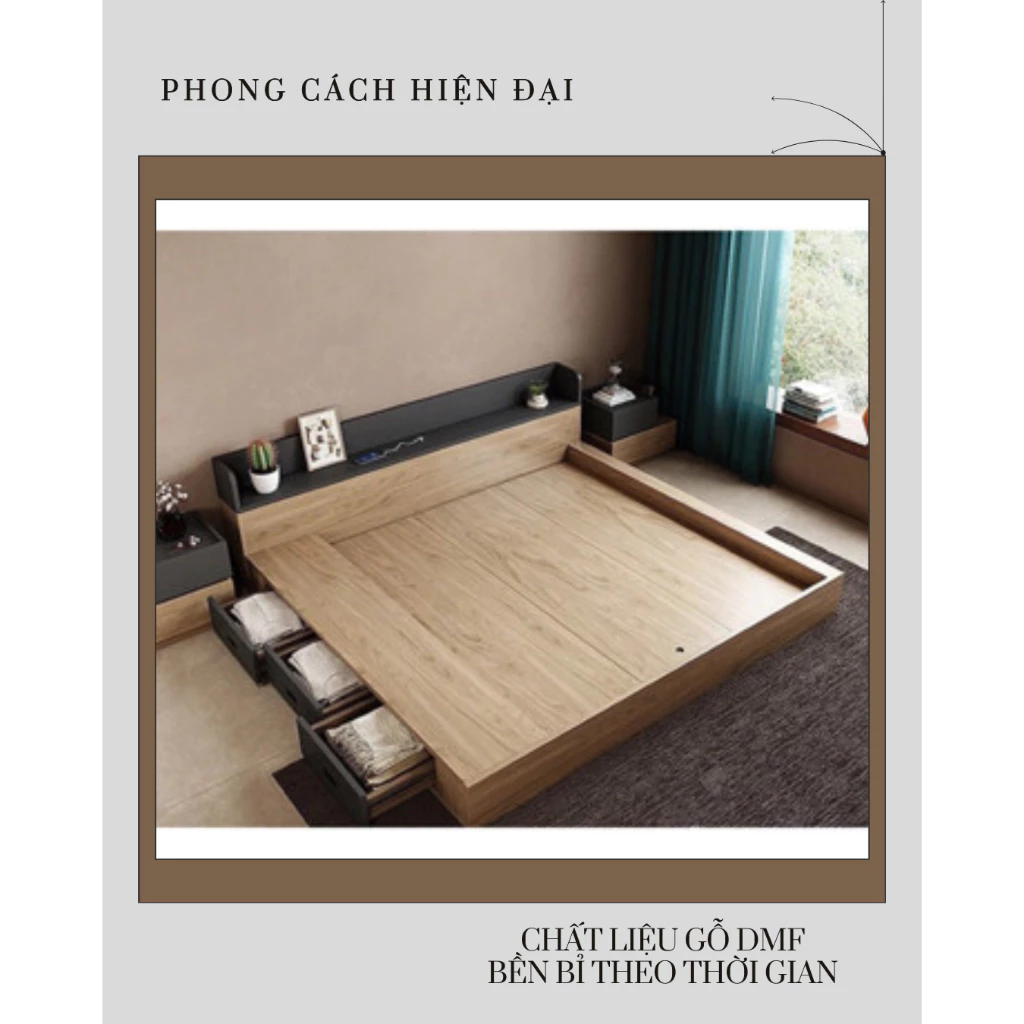 Đánh giá Giường Ngủ Kiểu Nhật Phong Cách Hiện Đại -Thiết Kế Có Ngăn Kéo + Kệ Giường Tiện Lợi- Giá Xưởng