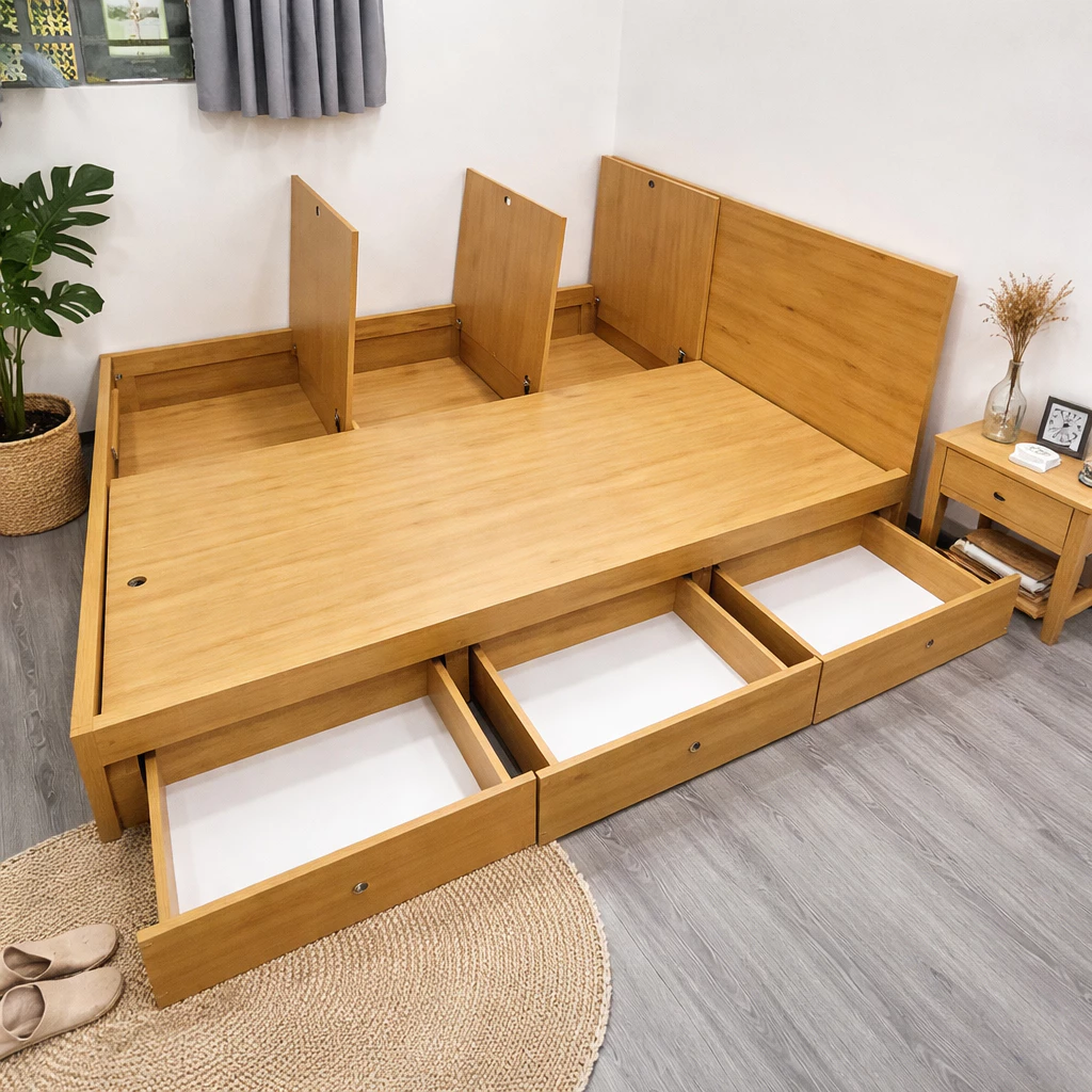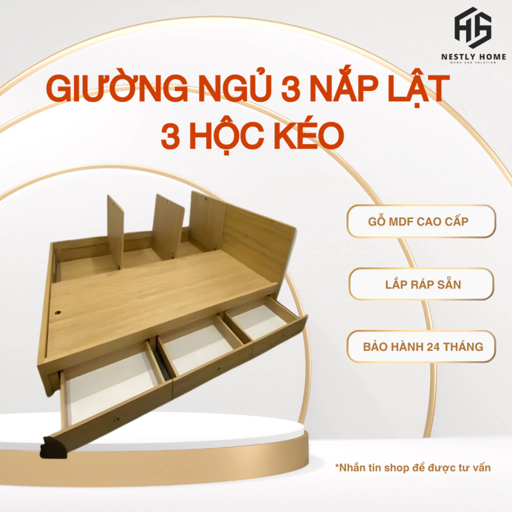 Đánh giá Giường ngủ thông minh 3 nắp lật 3 hộc kéo CAO 30CM có đầu giường