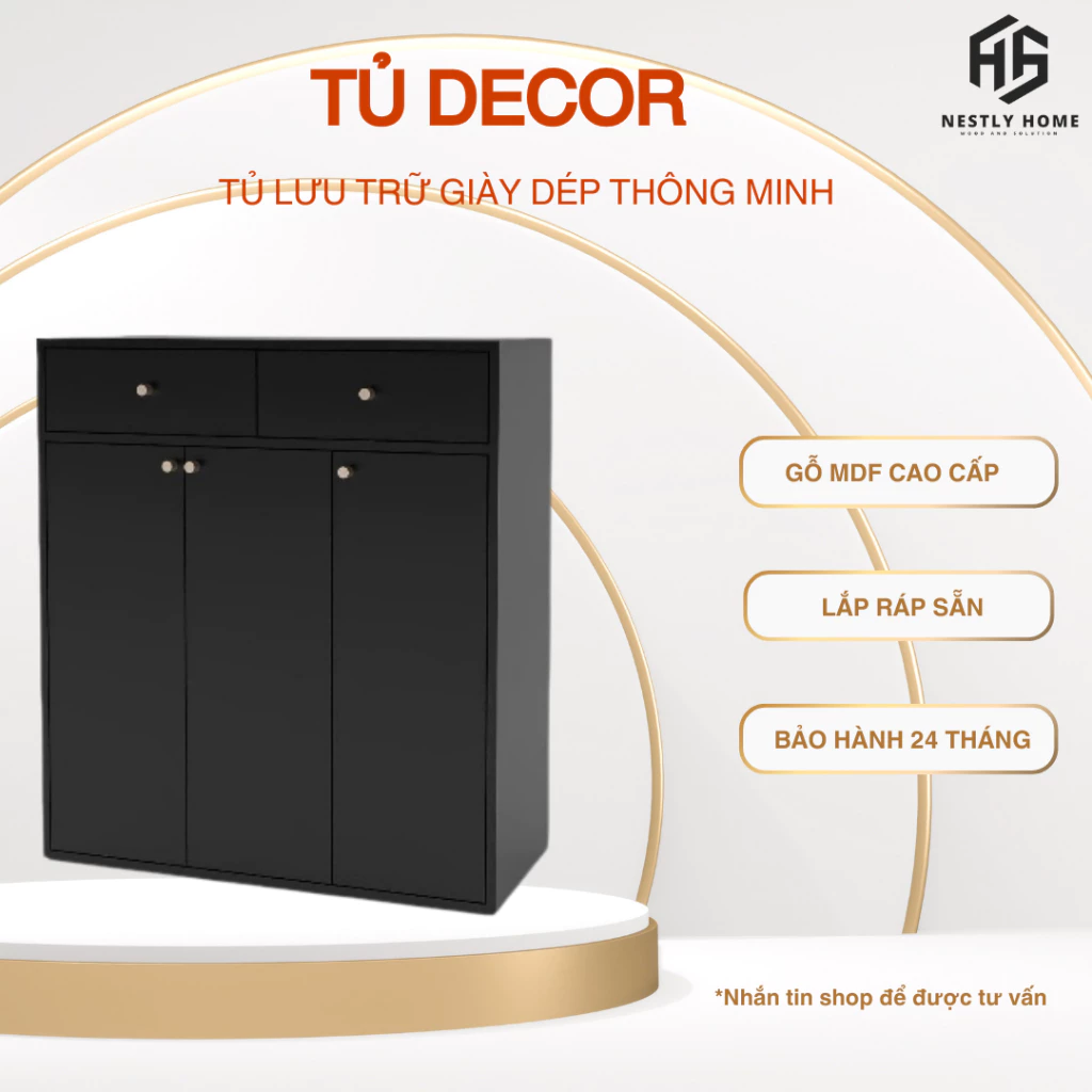 Tủ Decor, Tủ Lưu Trữ Giày Dép Thông Minh, Tủ Gỗ Đa Năng MDF Cao Cấp, Lắp Ráp Sẵn D90xR35xC100cm