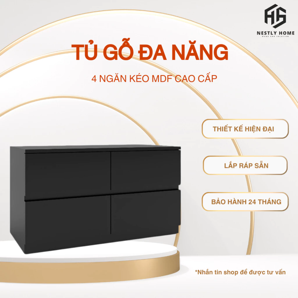 Tủ Gỗ Đa Năng, Tủ Decor Tối Giản Sang Trọng, Tủ 4 Ngăn Gỗ MDF Cao Cấp, Lắp Ráp Sẵn