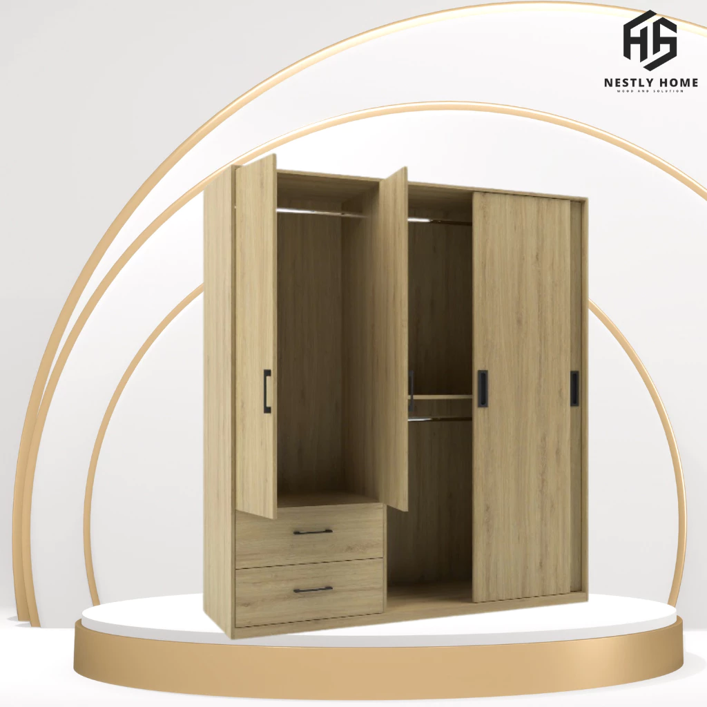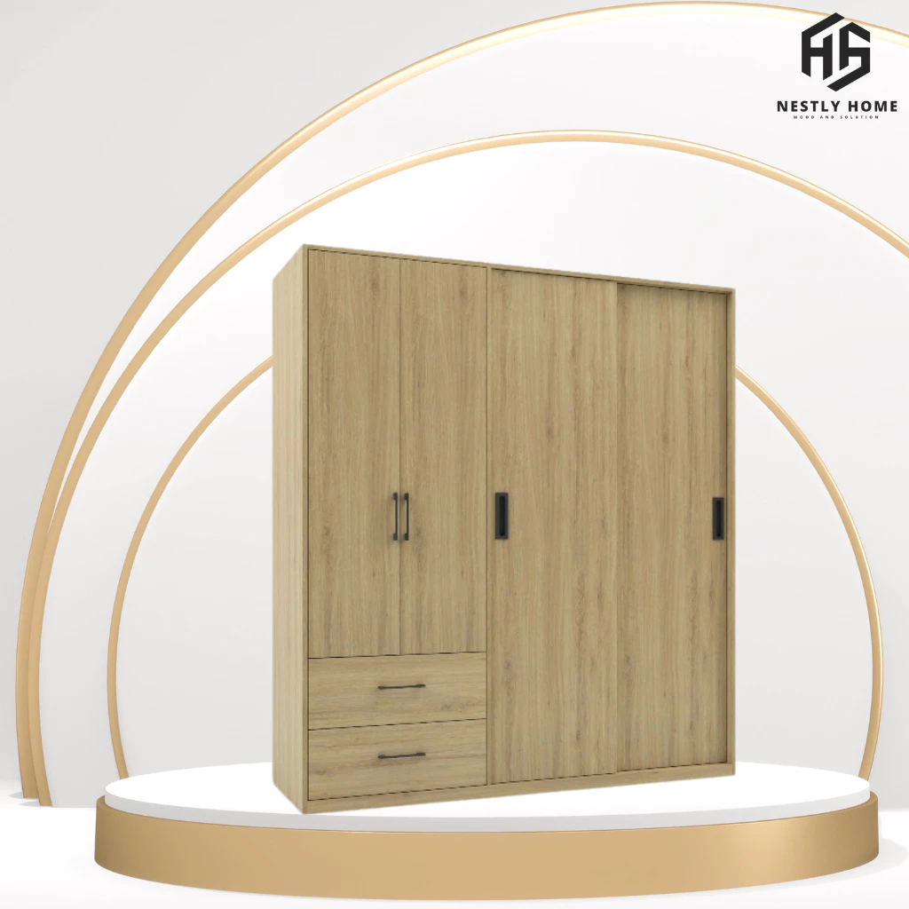 Đánh giá Tủ quần áo cửa lùa kết hợp cánh mở thông minh gỗ MDF cao cấp