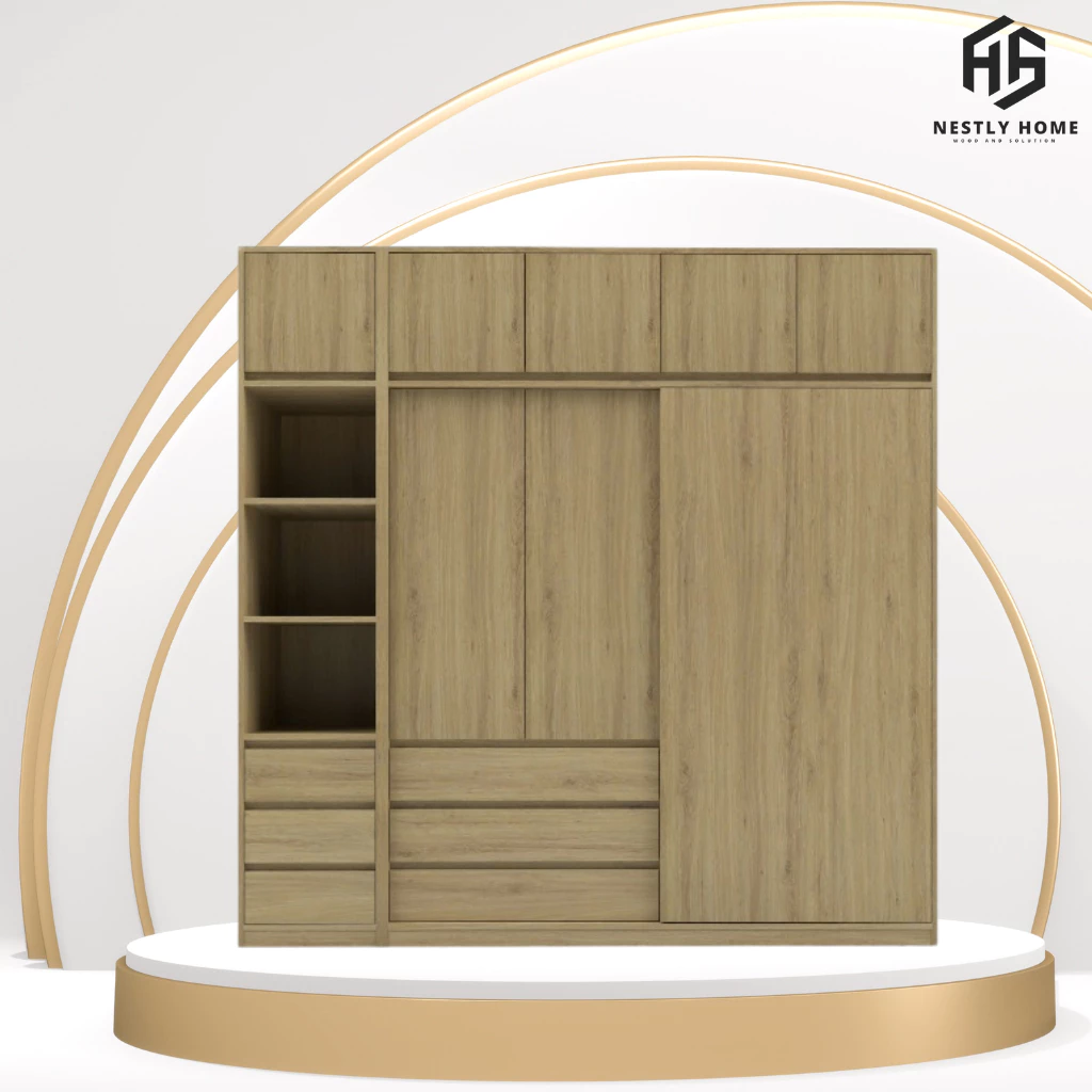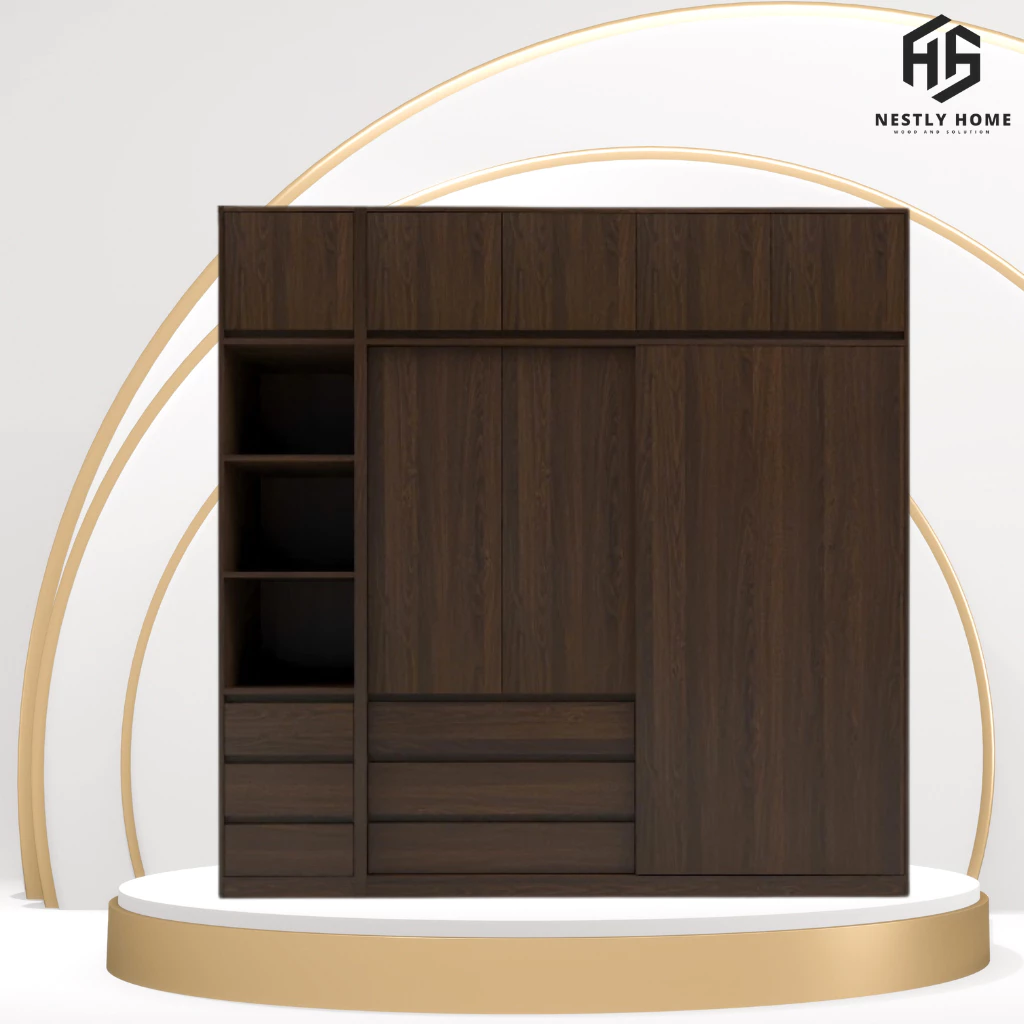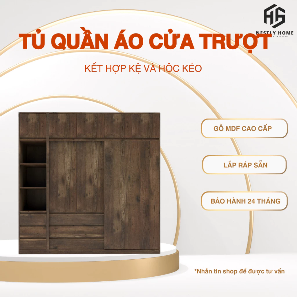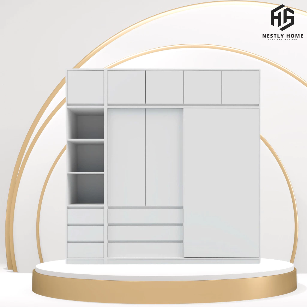 Đánh giá Tủ quần áo cửa trượt thông minh kết hợp kệ và hộc kéo gỗ MDF cao cấp