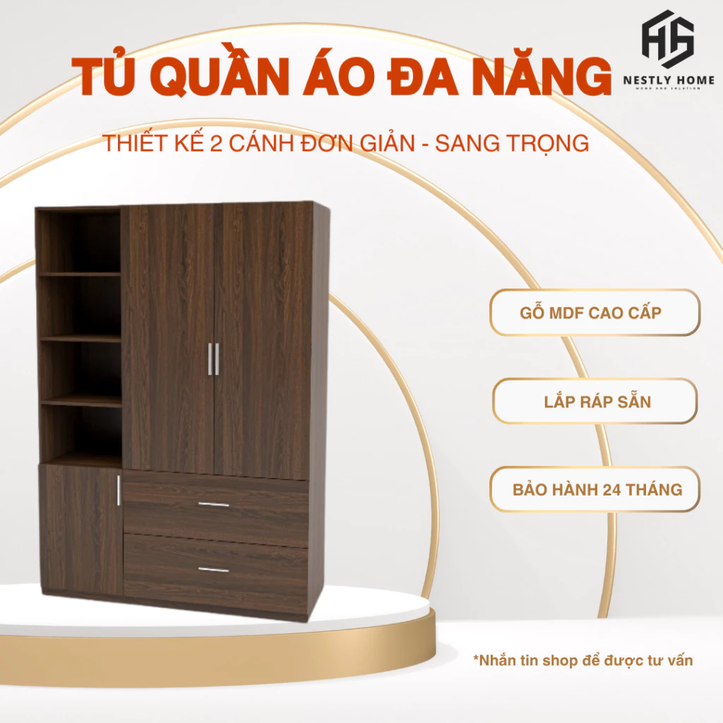 Đánh giá Tủ Quần Áo Đa Năng 2 Cánh Đơn Giản, Sang Trọng, Gỗ MDF Cao Cấp Lắp Ráp Sẵn