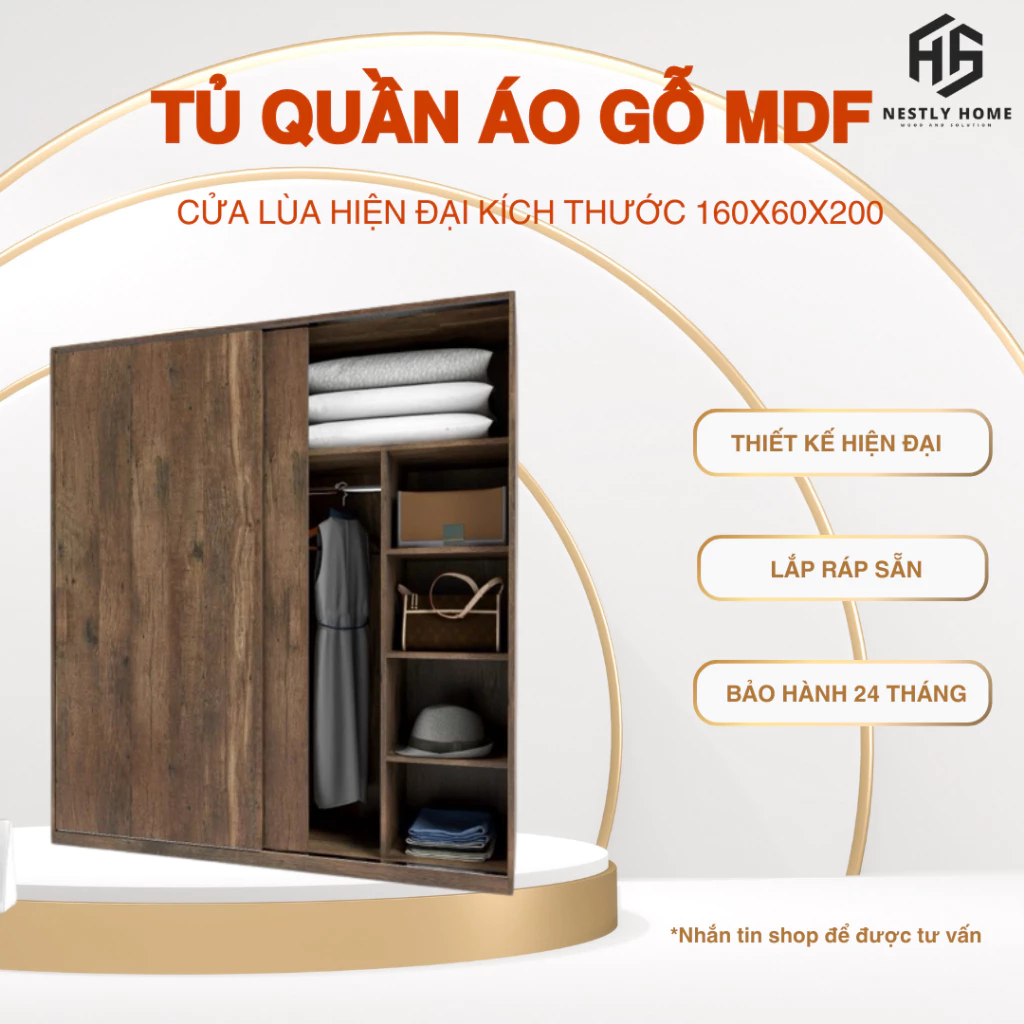 Đánh giá Tủ Quần Áo Gỗ MDF cửa Lùa Hiện Đại kích thước D160xR60xC200